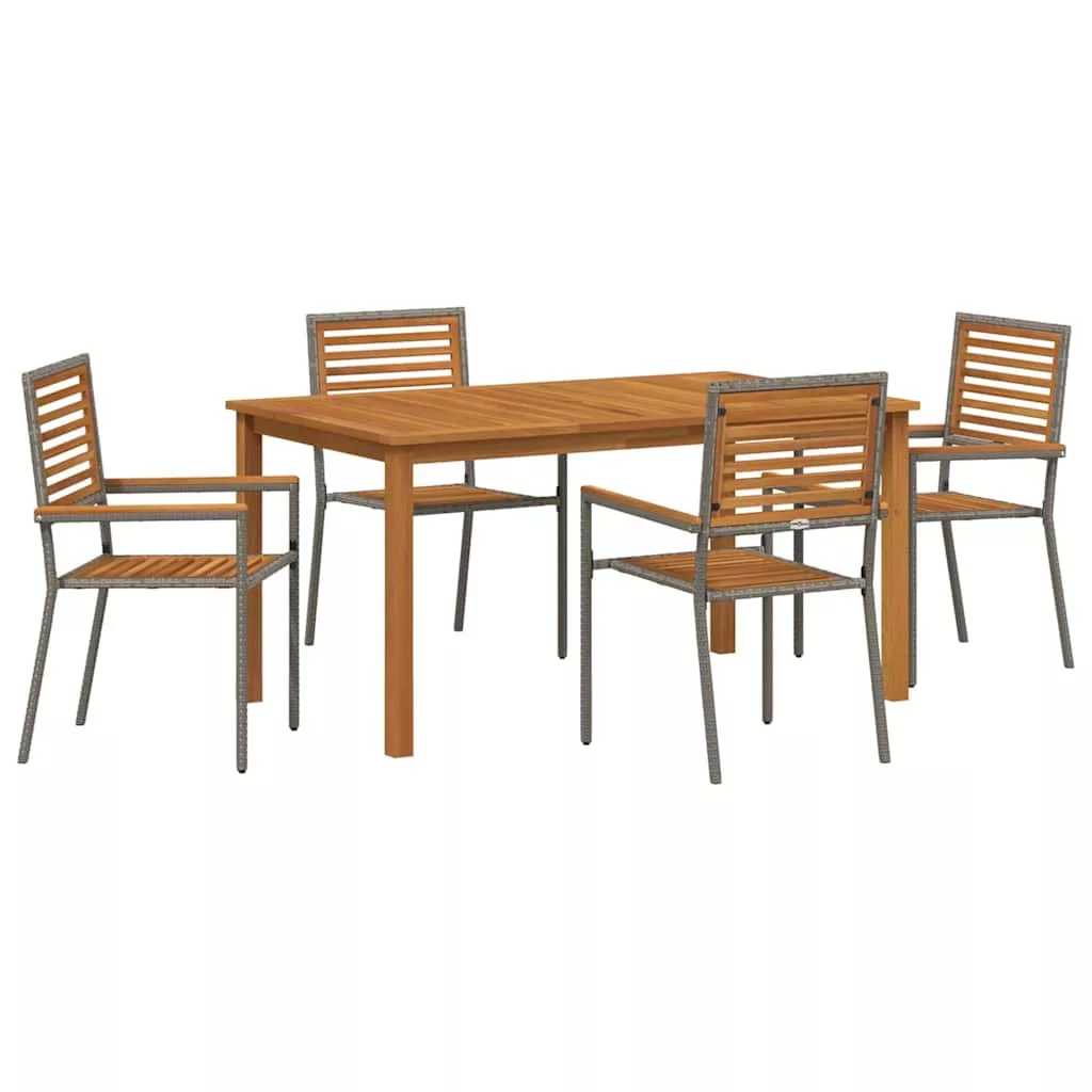 Ez a modern kerti étkezőgarnitúra egyszerűséget és funkciót hoz a szabadba. Kertre vagy teraszra való, letisztult vonalaival és minimális díszítésével stílusos légkört teremt a vacsorákhoz vagy a nyugodt reggelekhez. Tömör akácfa és poli rattan kombinációja nemcsak tartós, hanem szép is, így tökéletes választás, ha szereted a stílust és a praktikát.