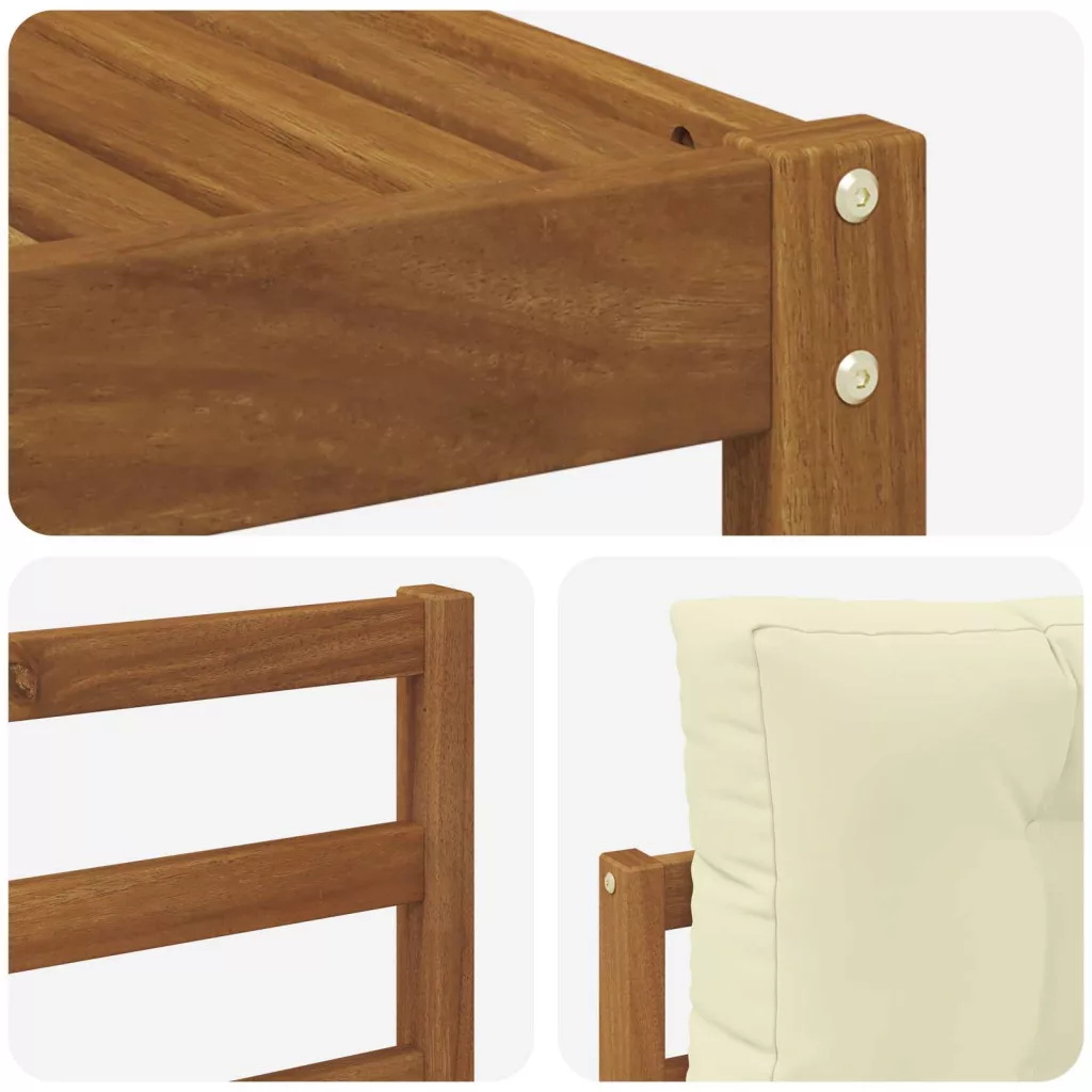 Ez a kültéri szekcionált kanapé szett a modern eleganciát hozza el karcsú dizájnjával, ideális bármilyen kert, terasz vagy medence transformálásához. Tömör akácfából készült, gazdag barna színben, ami nemcsak látványos, de masszív alapot is ad, ami ellenáll a különböző időjárási viszonyoknak. Moduláris felépítése lehetővé teszi, hogy könnyen igazodjon bármely területhez, több rugalmasságot és kreativitást kínálva a berendezéshez.