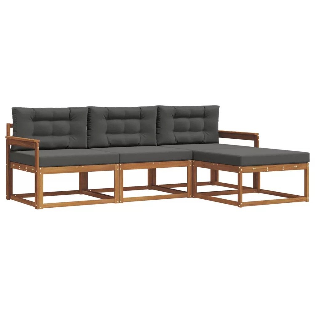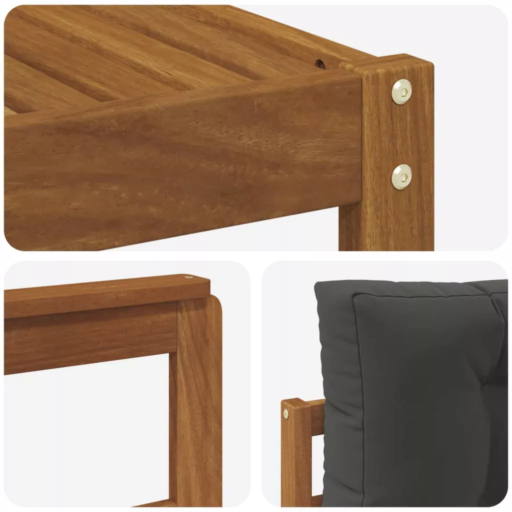 Ez a kültéri szekcionált kanapé szett a modern eleganciát hozza el karcsú dizájnjával, ideális bármilyen kert, terasz vagy medence transformálásához. Tömör akácfából készült, gazdag barna színben, ami nemcsak látványos, de masszív alapot is ad, ami ellenáll a különböző időjárási viszonyoknak. Moduláris felépítése lehetővé teszi, hogy könnyen igazodjon bármely területhez, több rugalmasságot és kreativitást kínálva a berendezéshez.