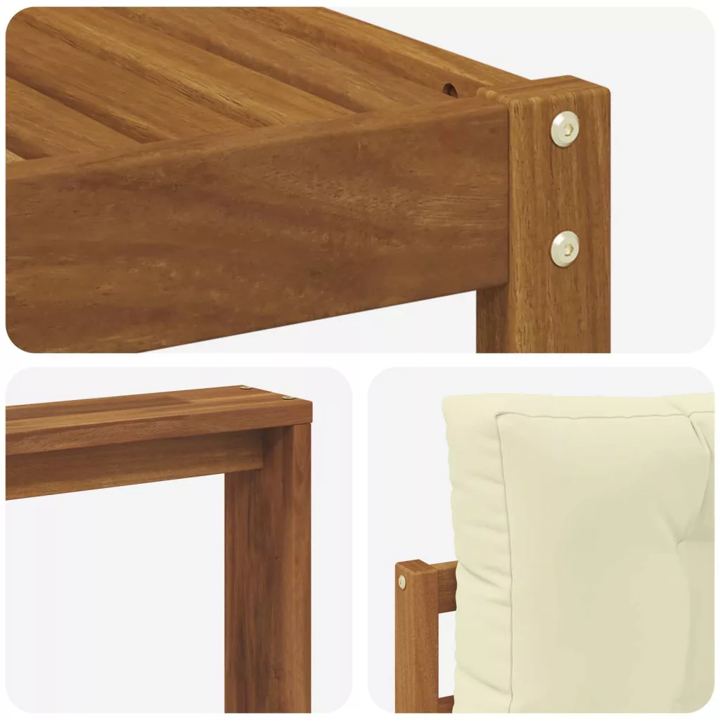 Ez a kültéri szekcionált kanapé szett a modern eleganciát hozza el karcsú dizájnjával, ideális bármilyen kert, terasz vagy medence transformálásához. Tömör akácfából készült, gazdag barna színben, ami nemcsak látványos, de masszív alapot is ad, ami ellenáll a különböző időjárási viszonyoknak. Moduláris felépítése lehetővé teszi, hogy könnyen igazodjon bármely területhez, több rugalmasságot és kreativitást kínálva a berendezéshez.