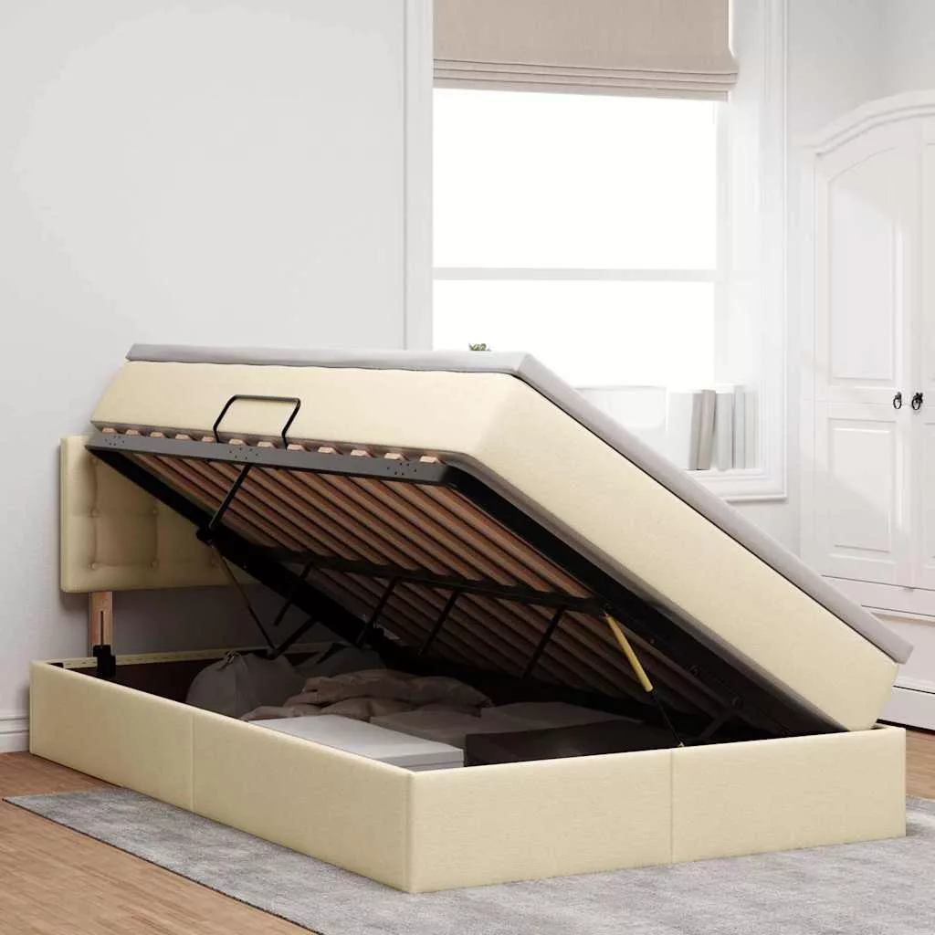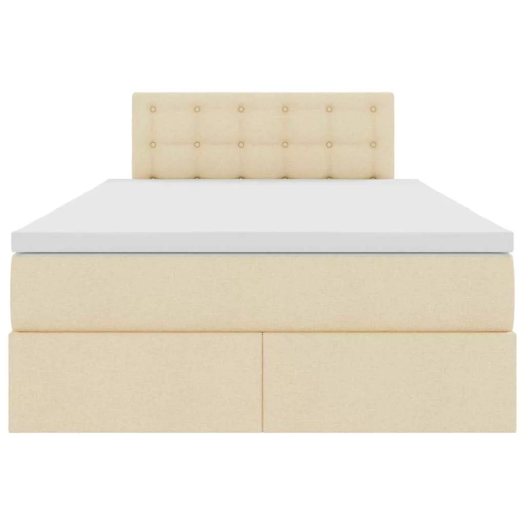 vidaXL Ágy tárolóval és matraccal matracmal Krém 120 x 190 cm Faanyag