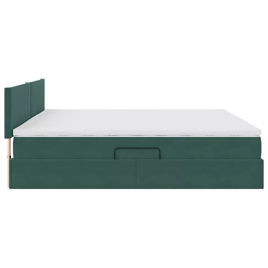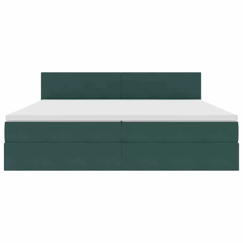 vidaXL Tárolós Ágy matracmal tárolóval Sötétzöld 200 x 200 cm Bársony