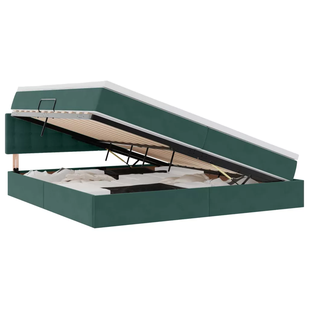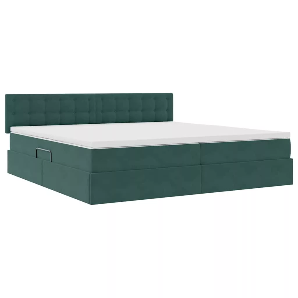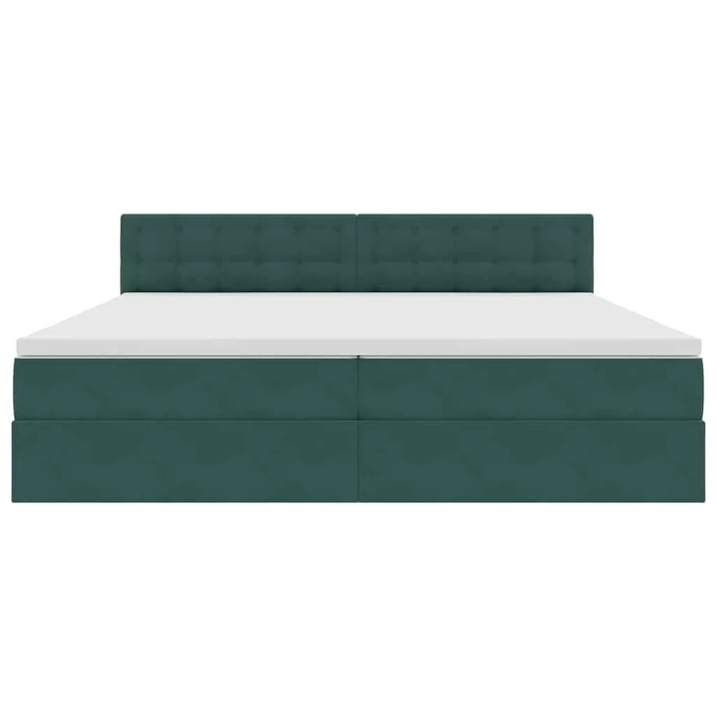 vidaXL Tárolós Ágy matracmal tárolóval Sötétzöld 200 x 200 cm Bársony