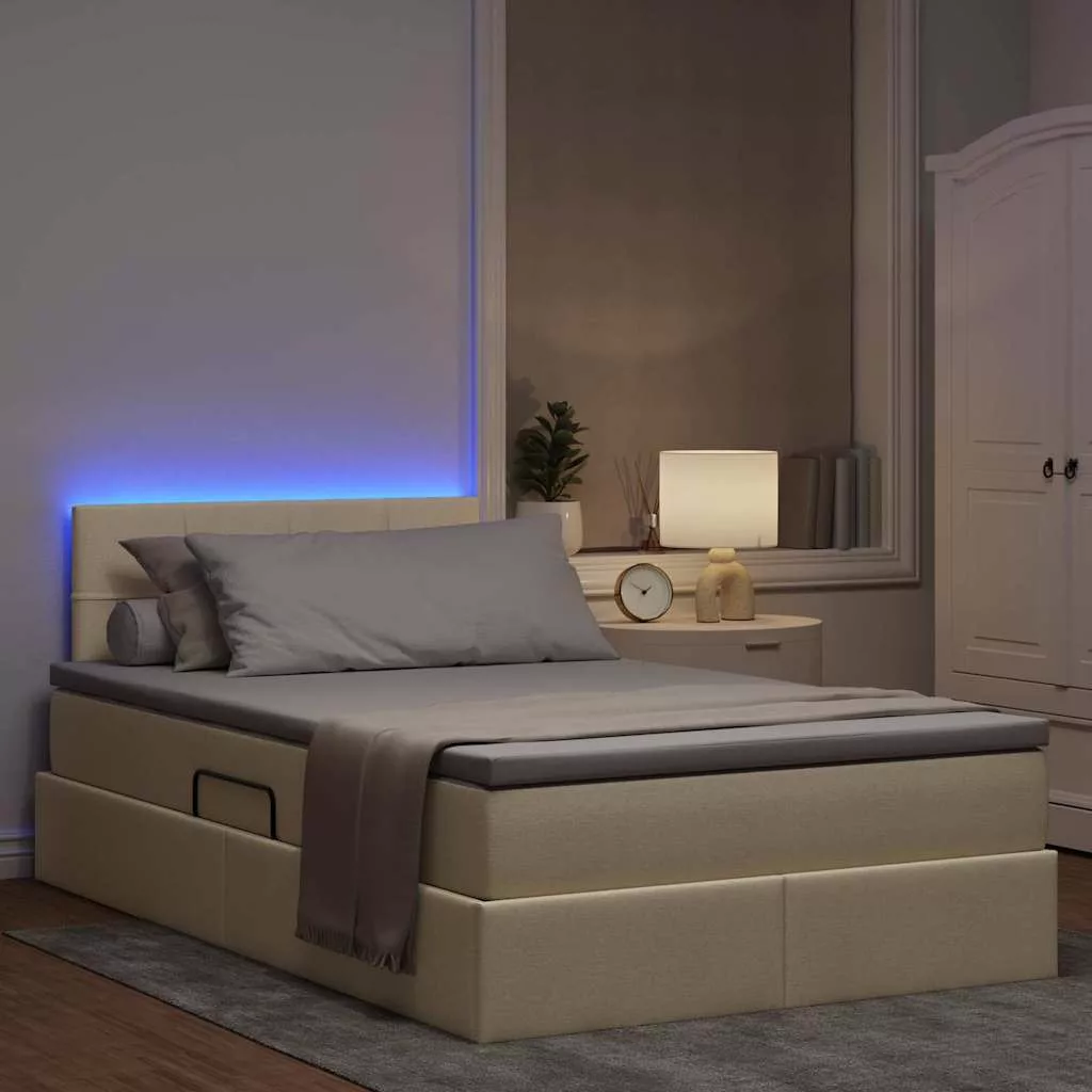 vidaXL Ágy tárolóval és LED lámpával leddel Krém 120 x 190 cm szövet