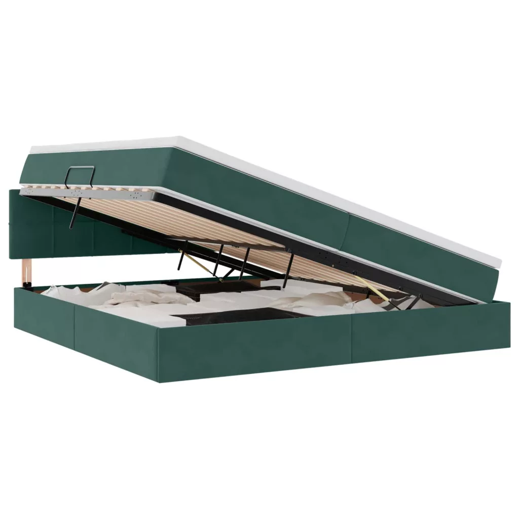 vidaXL Ágy tárolóval és LED lámpával Sötétzöld 200 x 200 cm Bársony