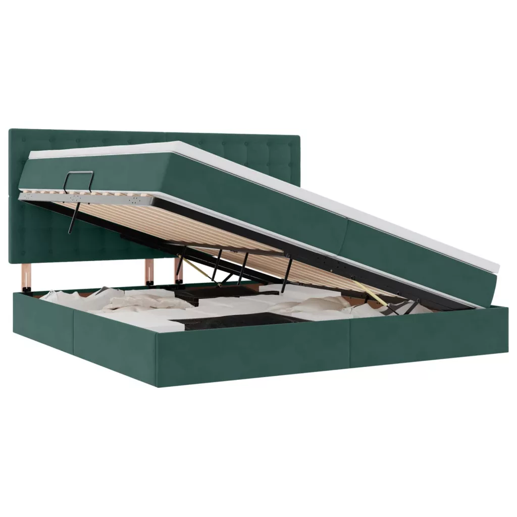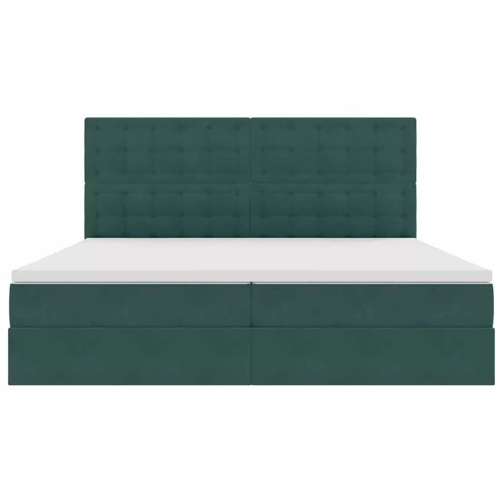 vidaXL Ágy tárolóval és matraccal Sötétzöld 200 x 200 cm Bársony