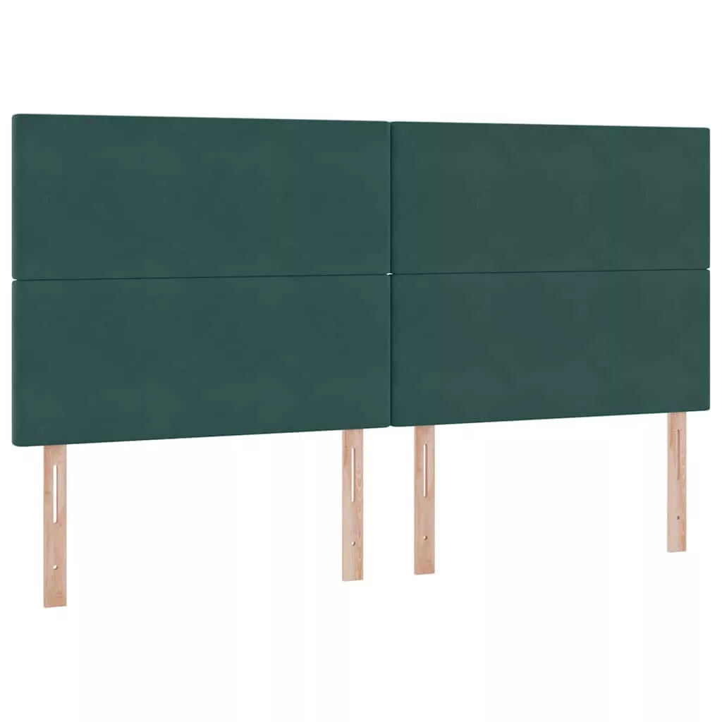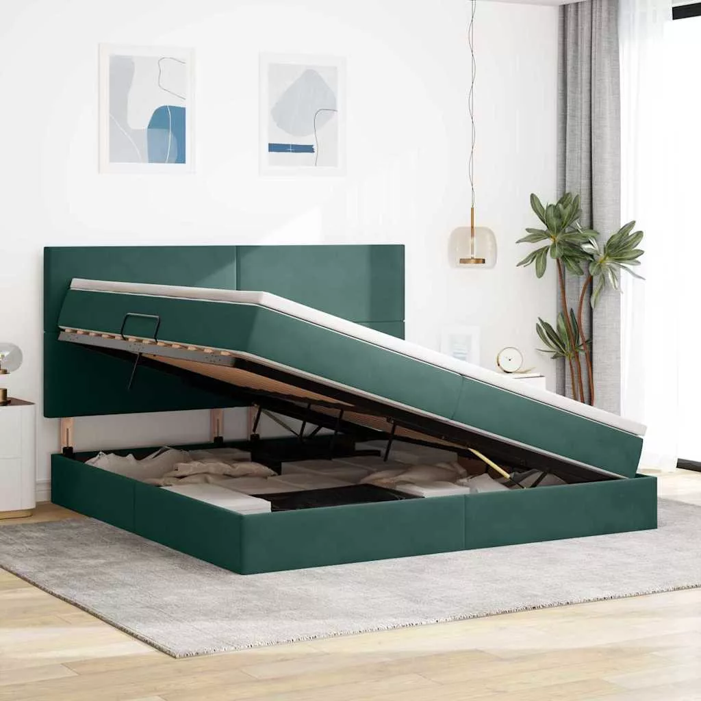vidaXL Ágy tárolóval és LED lámpával Sötétzöld 200 x 200 cm Bársony