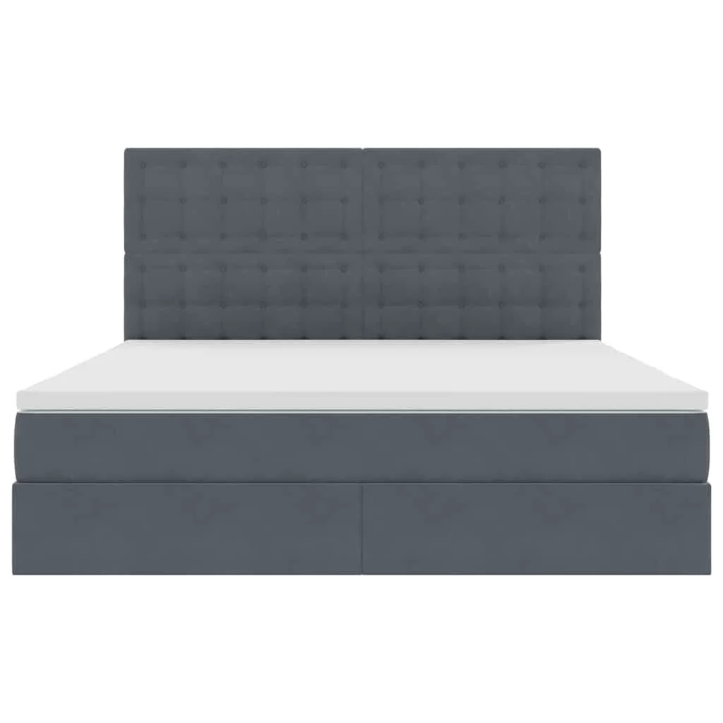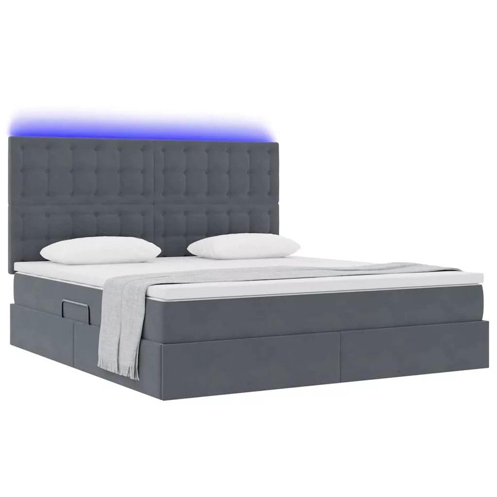 vidaXL Ágy tárolóval és LED lámpával Sötétszürke 160 x 200 cm Bársony