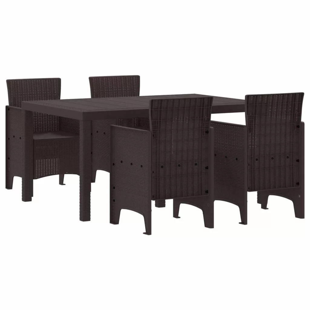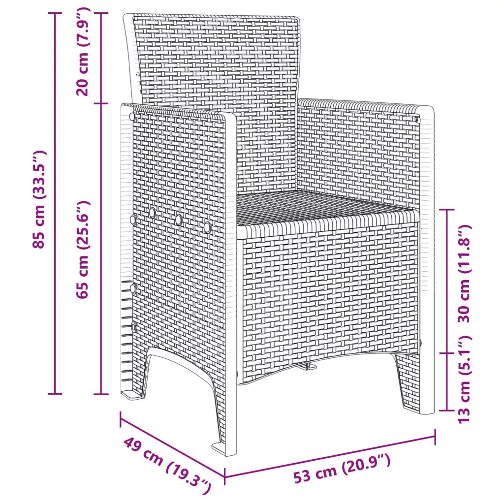 - Anyag: Főleg poli rattanból készült, ez a kerti étkezőszett stílusos és ellenálló, ideális a szabadban való használatra. Az anyag UV-álló, védi a túlzott napsütéstől, és sokáig megőrzi a szépségét.
