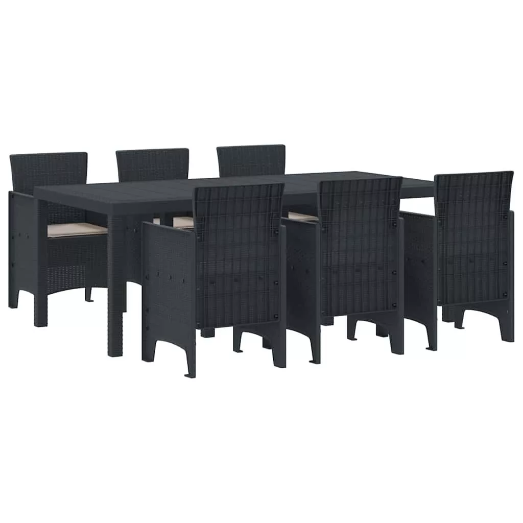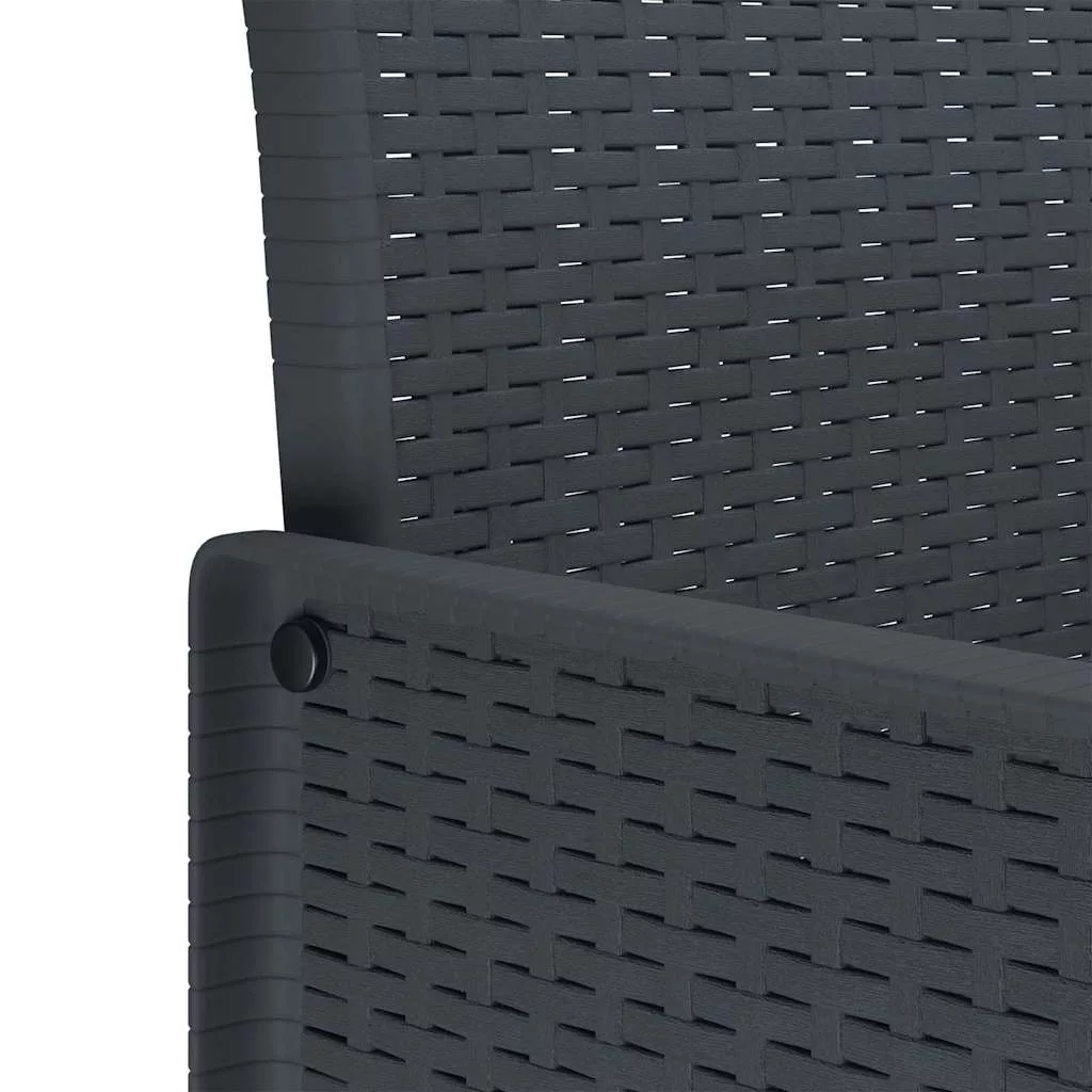- Anyagok: Polipropilénből készült, modern dizájnnal, ami ötvözi a praktikusságot és a stílust. Ez az anyag jól bírja a kültéri elemeket, mint a nedvesség és az UV-sugárzás, biztosítva, hogy a kerti étkező szett évekig esztétikus és használható maradjon.