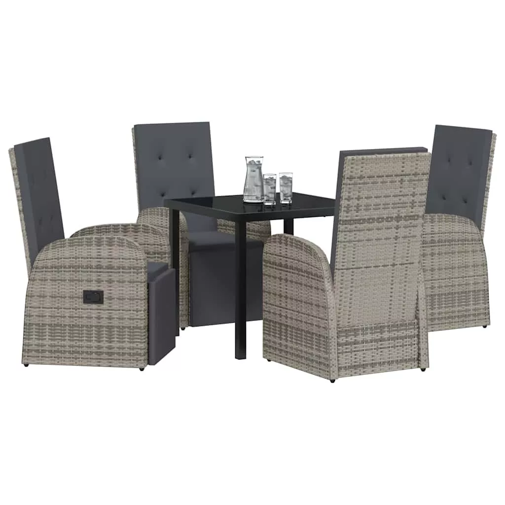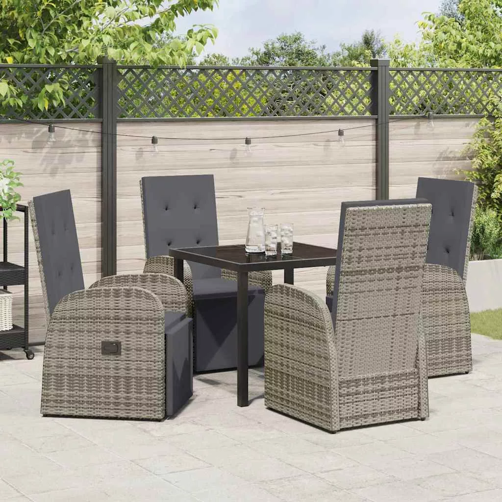 - Poli rattan elemek: A székek és hátlapok poli rattant használnak, ami ismert az UV-állóságáról és könnyű súlyáról. Ezzel modern érintést adva, kényelmes ülést biztosítanak hosszú beszélgetésekhez a napsütésben.
