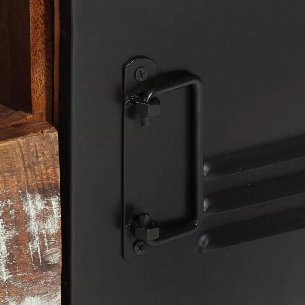 - Anyaga: tömör újrahasznosított fa vegyes színű felületkezeléssel, porszórt vas