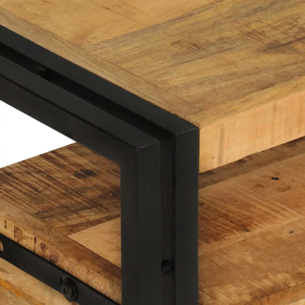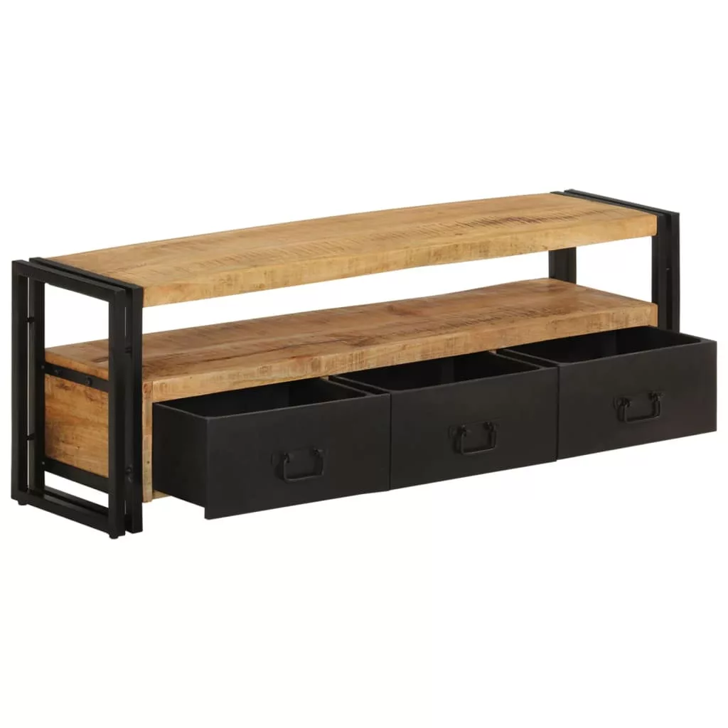 - Nyers mangófa: Ez a TV-állvány tömör mangófából, egy sűrű erezetű keményfából készült. A tömör mangófa nemcsak erős, hogy elbírja a rá nehezedő súlyt, de időtálló is.