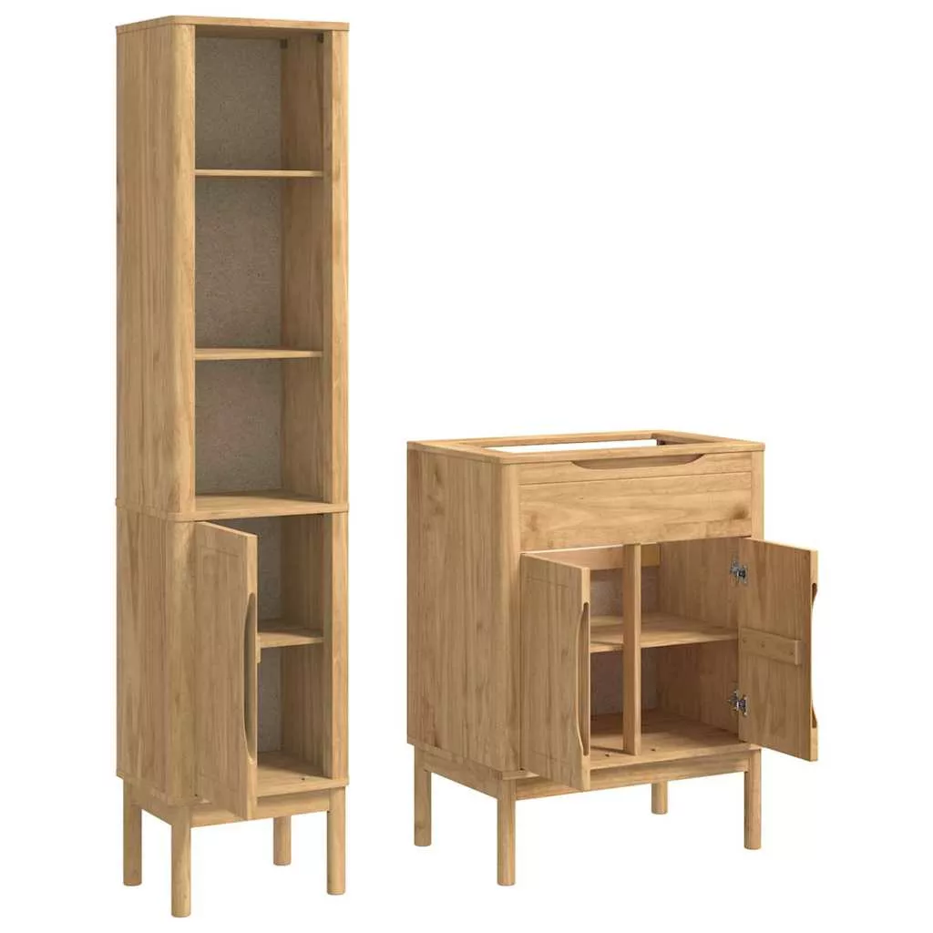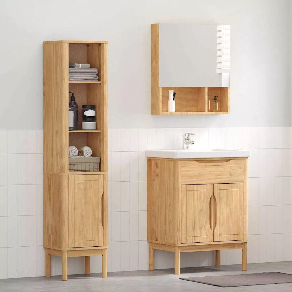 - Tömör fenyőfa szerkezet Tömör fenyőfából készült, ez a fürdőszobabútor szett hihetetlen erősséget és látványt nyújt. Minden darab - váz, fogantyúk, hátlap - gondos tervezéssel készült, hogy biztosítsa a tartósságot. Az anyag gyönyörű erezete egy csipetnyi természetes bájt ad a fürdőszobádhoz.