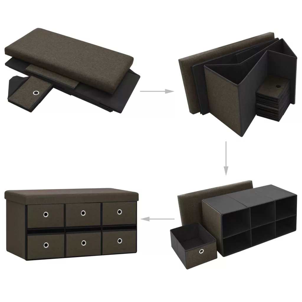 Ez az előszobai pad MDF-ből készült és művászon kárpitozást kapott, így igazán tartós és stabil. A habszivaccsal töltött tárolódoboz kényelmes ülőhelyet biztosít. A pad 6 fiókkal rendelkezik, így bőséges helyet kínál különféle kellékek kézközelben való tárolására. Ráadásul a doboz összecsukható amikor nincs használatban, a helytakarékosság érdekében.