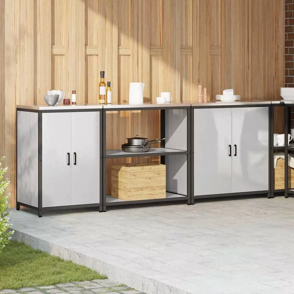 - Included Components: A szekrény sok polcot és rekeszt tartalmaz, mindegyik gondosan megtervezve, hogy mindent el tudj benne helyezni - edények, lábasok, élelmiszerek. Az acél polcok fokozzák az egység strapabíróságát, megbízható támogatást adva a nehezebb tárgyaknak, míg az acél keret és oszloplábak még stabilabbá teszik az egészet.
