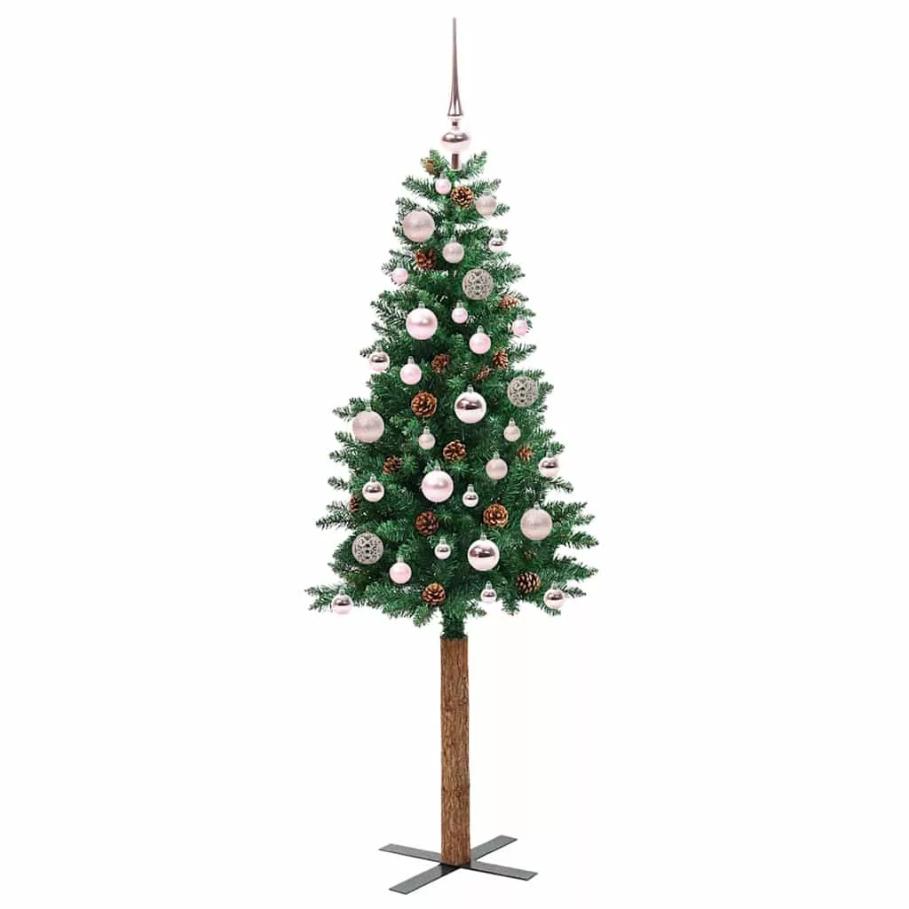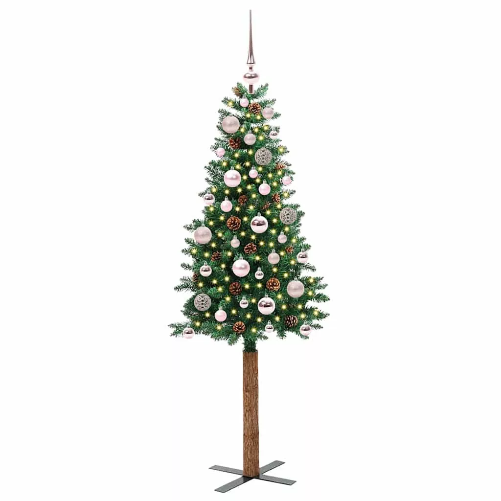 vidaXL Karcsú karácsonyfa 150 LED-del Zöld 150 cm PVC és tömör fenyőfa