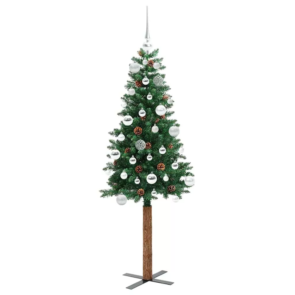 vidaXL Karcsú karácsonyfa 150 LED-del Zöld 150 cm PVC és tömör fenyőfa