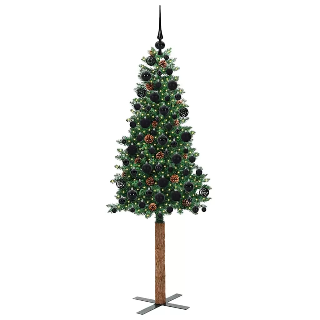 vidaXL Karcsú karácsonyfa 300 LED-del Zöld 180 cm PVC és tömör fenyőfa