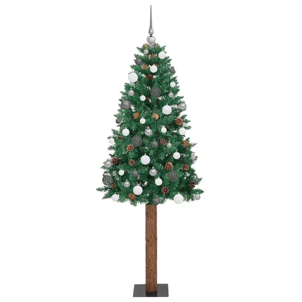 - Díszített fenyő tobozokkal és dísz golyókkal, élethű ágvégük, valódi fa törzs