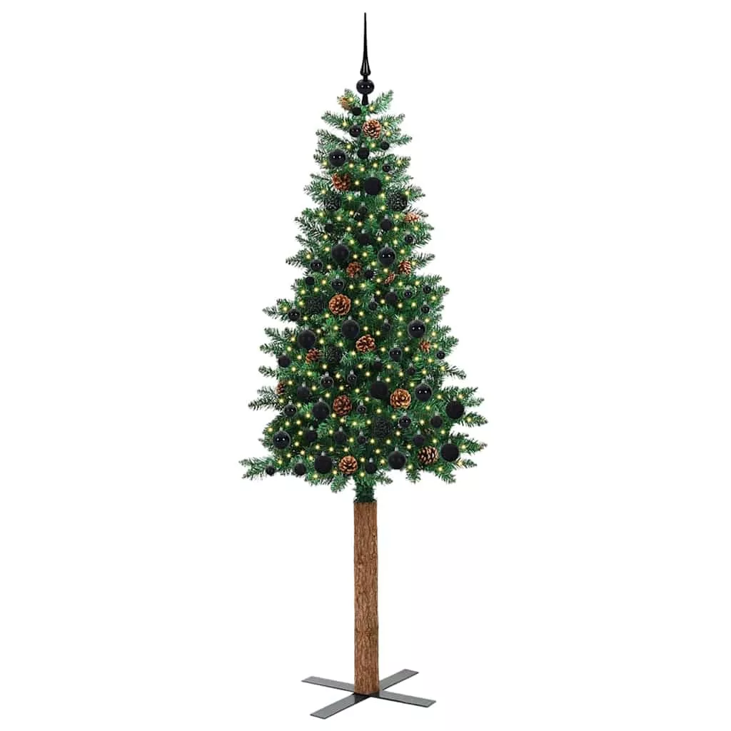 vidaXL Karcsú karácsonyfa 300 LED-del Zöld 210 cm PVC és tömör fenyőfa