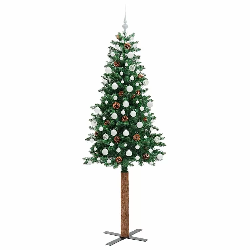 - Díszített fenyő tobozokkal és dísz golyókkal, élethű ágvégük, valódi fa törzs