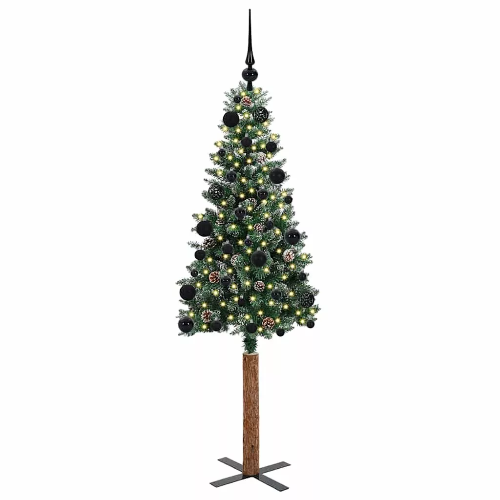 vidaXL Karcsú karácsonyfa Zöld és Fehér 150 cm PVC és tömör fenyőfa