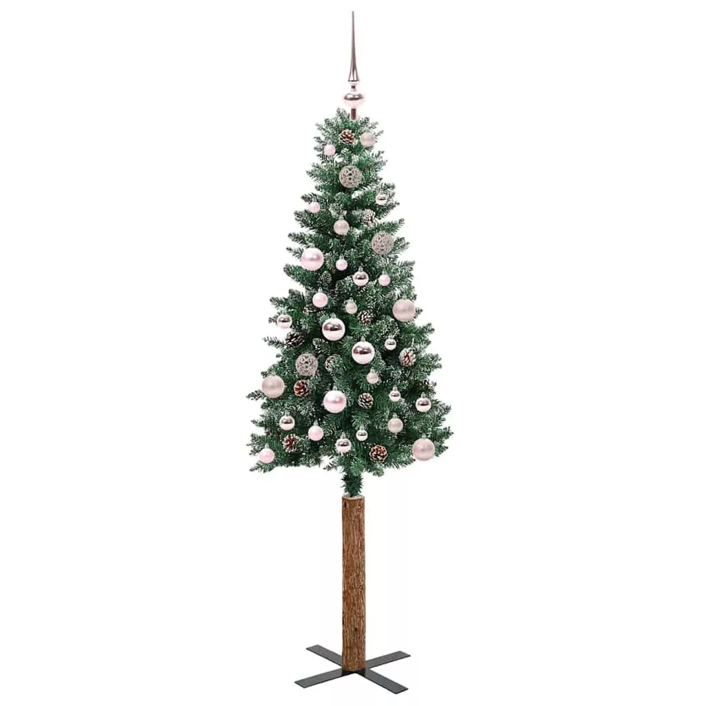 vidaXL Karcsú karácsonyfa Zöld és Fehér 150 cm PVC és tömör fenyőfa