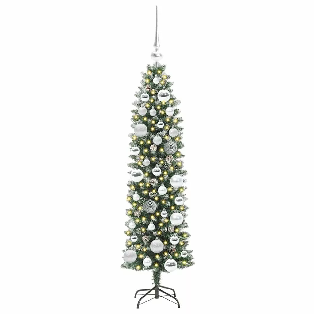 vidaXL Mű Karcsú Karácsonyi Fa 150 LED-del Zöld és fehér 120 cm