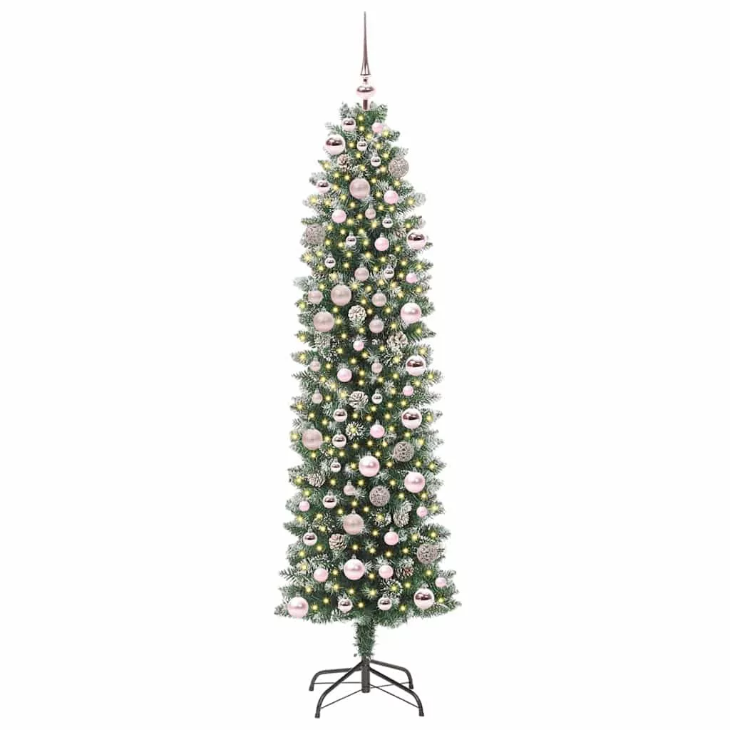 vidaXL Mű Karcsú Karácsonyi Fa 300 LED-del Zöld és fehér 180 cm