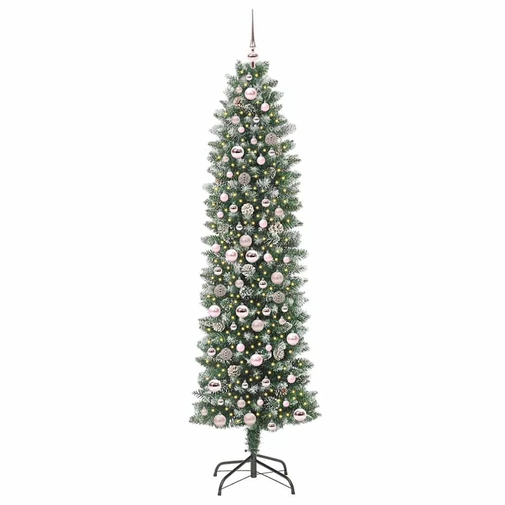 vidaXL Mű Karcsú Karácsonyi Fa 300 LED-del Zöld és fehér 210 cm