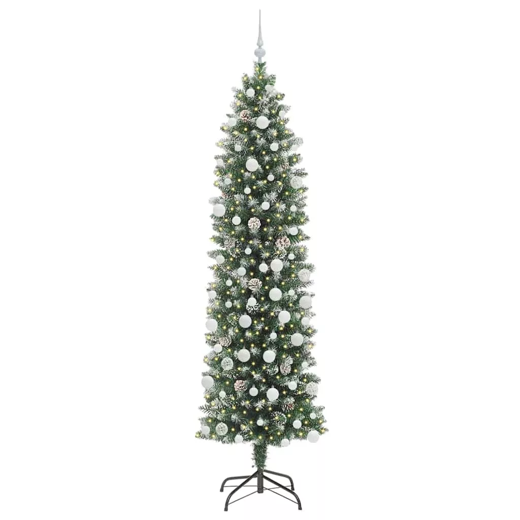 vidaXL Mű Karcsú Karácsonyi Fa 300 LED-del Zöld és fehér 210 cm
