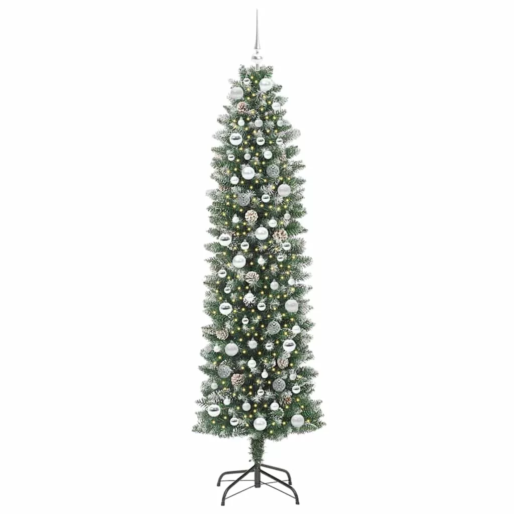 Ez a mesterséges karcsú karácsonyfa a tökéletes választás, ha elegáns, de mégis kompakt díszítésre vágysz. A fa karcsú, kúp alakúnak köszönhető, hogy maximálisan kihasználja a teret, így remekül illik kisebb nappalikba vagy védett kültéri helyentekre. Az élethű PVC ágai és a meleg fehér LED fények barátságos, hívogató hangulatot teremt a karácsonyi időszakban.