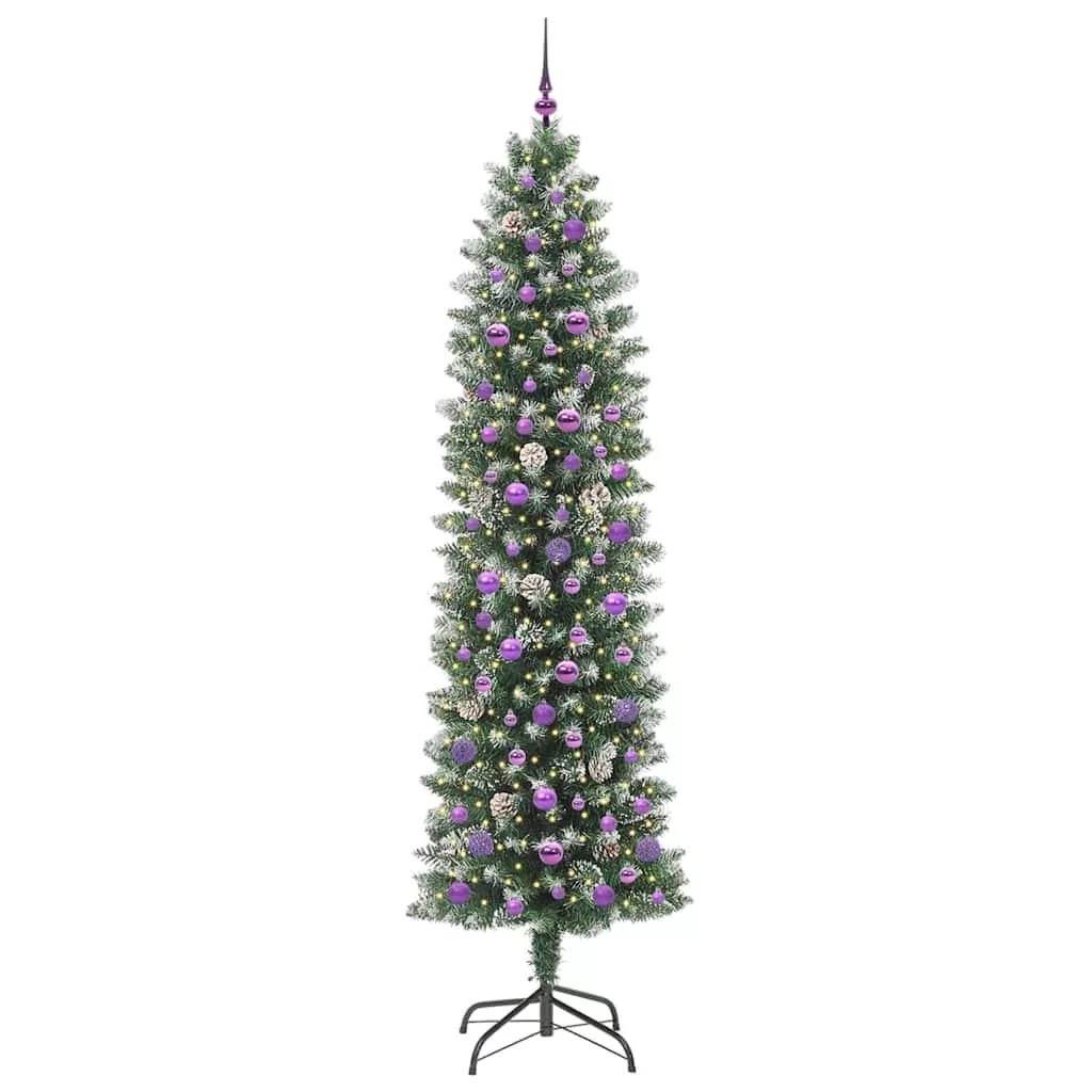 vidaXL Mű Karcsú Karácsonyi Fa 300 LED-del Zöld és Fehér 240 cm