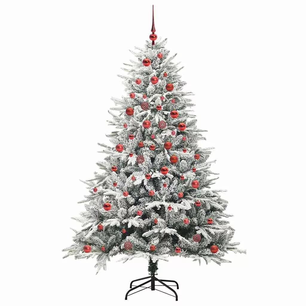 vidaXL Mesterséges, elővilágított karácsonyfa labdákkal Zöld 180 cm