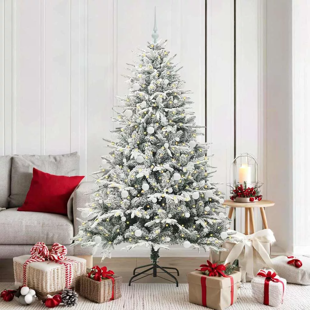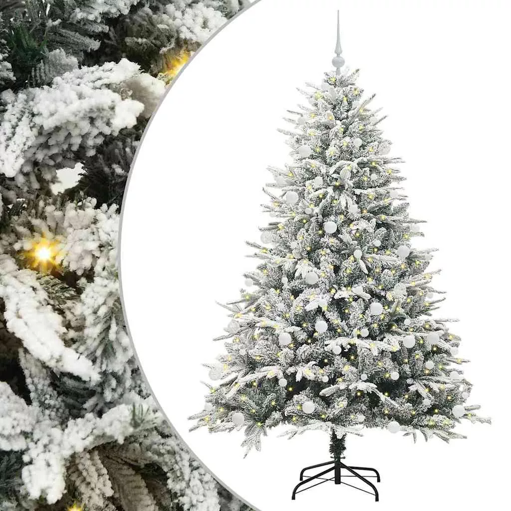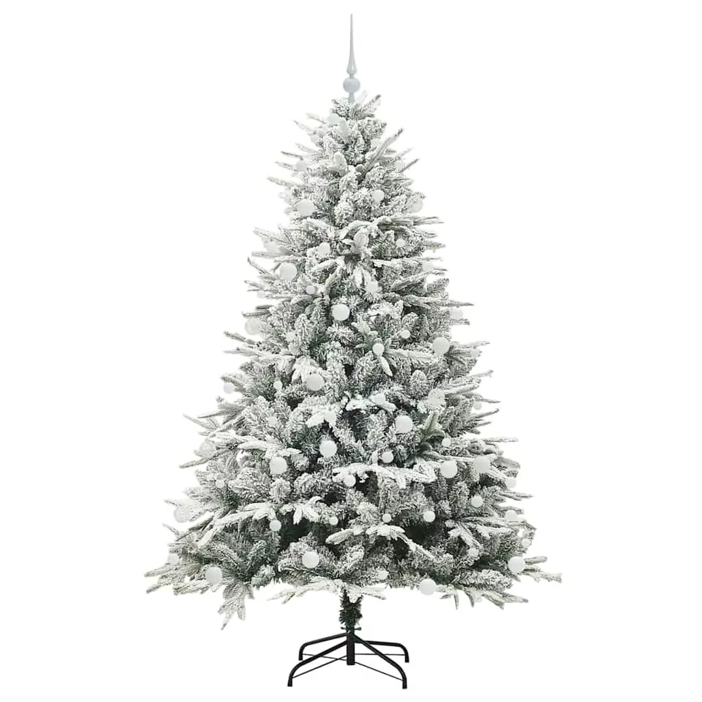 vidaXL Mesterséges, elővilágított karácsonyfa labdákkal Zöld 180 cm