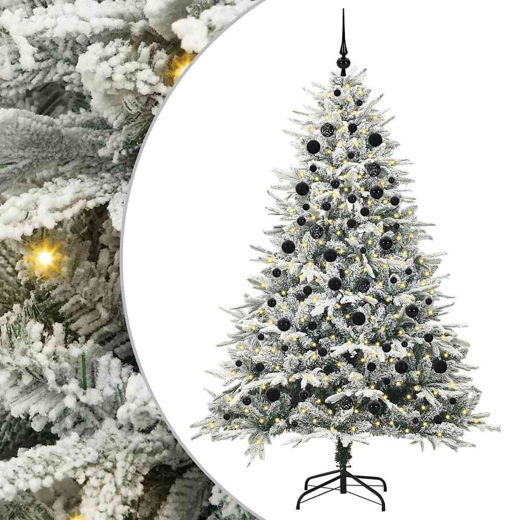 vidaXL Műfenyő világítással és gömbkészlettel Zöld 210 cm PVC és PE