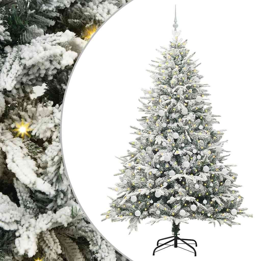vidaXL Műfenyő világítással és gömbkészlettel Zöld 210 cm PVC és PE