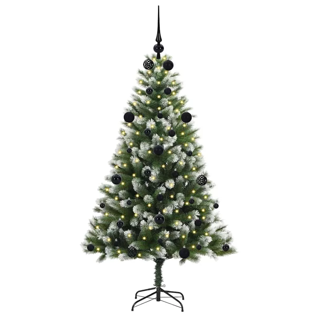 vidaXL Műanyag csuklós karácsonyfa bolyhos hóval Zöld és fehér 150 cm