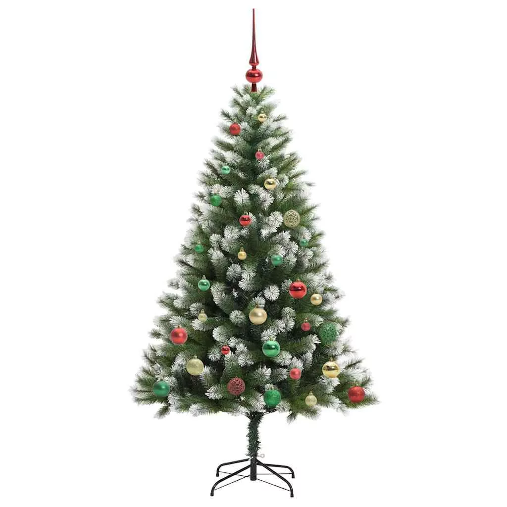 vidaXL Műanyag csuklós karácsonyfa bolyhos hóval Zöld és fehér 150 cm