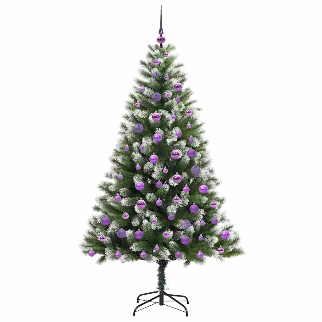 vidaXL Műanyag csuklós karácsonyfa bolyhos hóval Zöld és fehér 180 cm