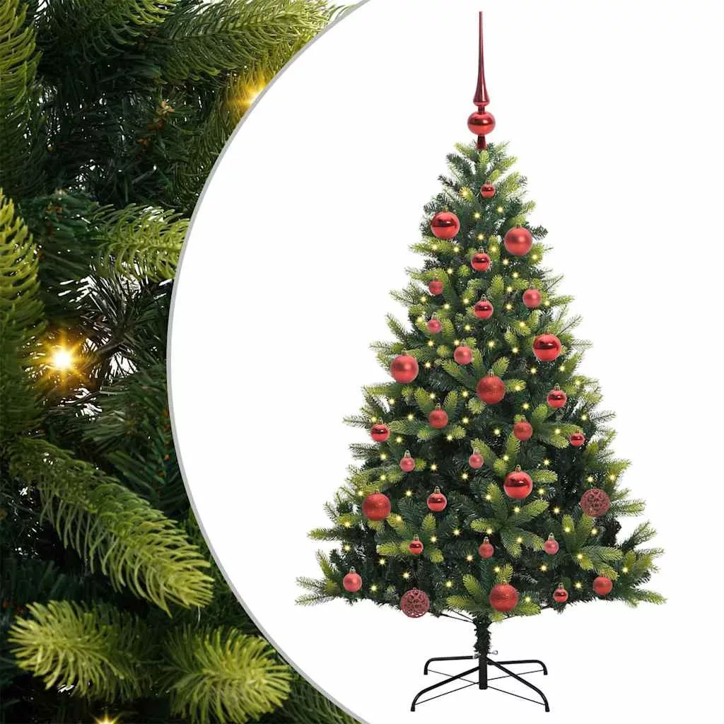 vidaXL Műanyag Hajtogatott Karácsonyfa 150 LED-del Zöld 150 cm