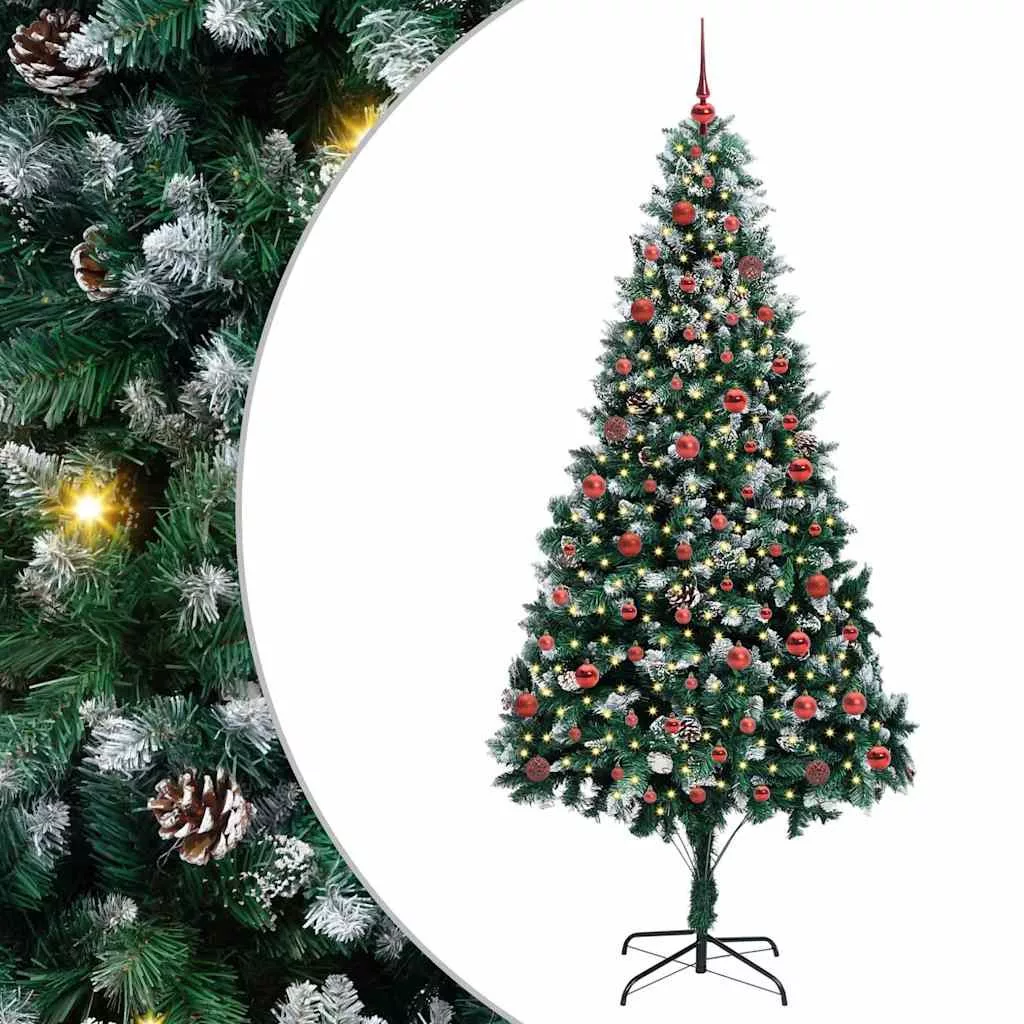 vidaXL Mű karácsonyfa 300 LED-del Zöld 210 cm PVC és Acél és Műanyag