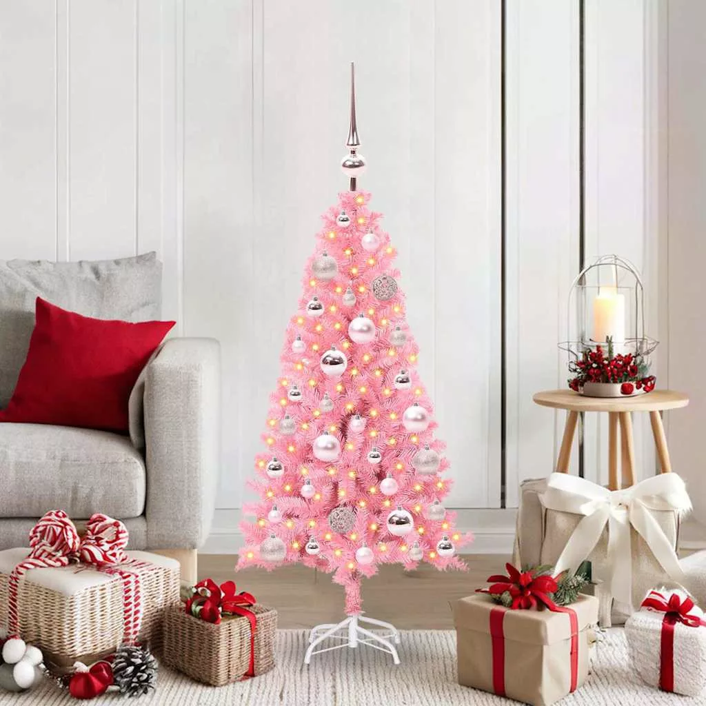 vidaXL Karácsonyfa 150 LED-del állvánnyal Rózsaszín 120 cm PVC