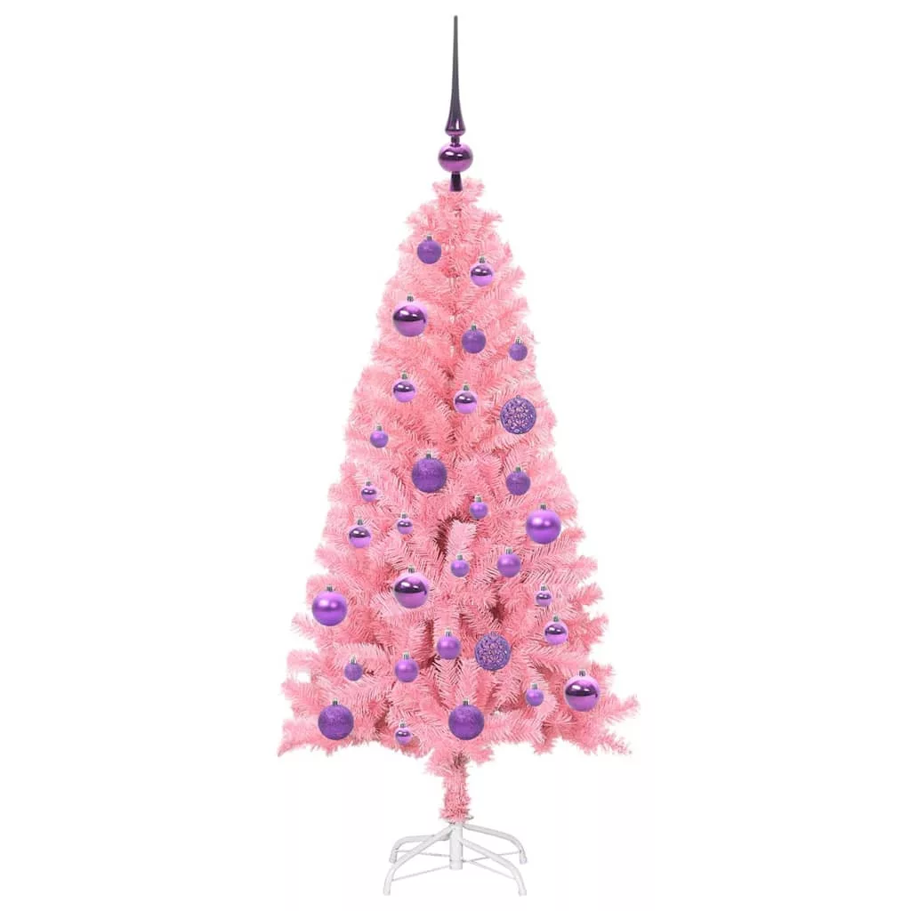 vidaXL Karácsonyfa 150 LED-del állvánnyal Rózsaszín 120 cm PVC