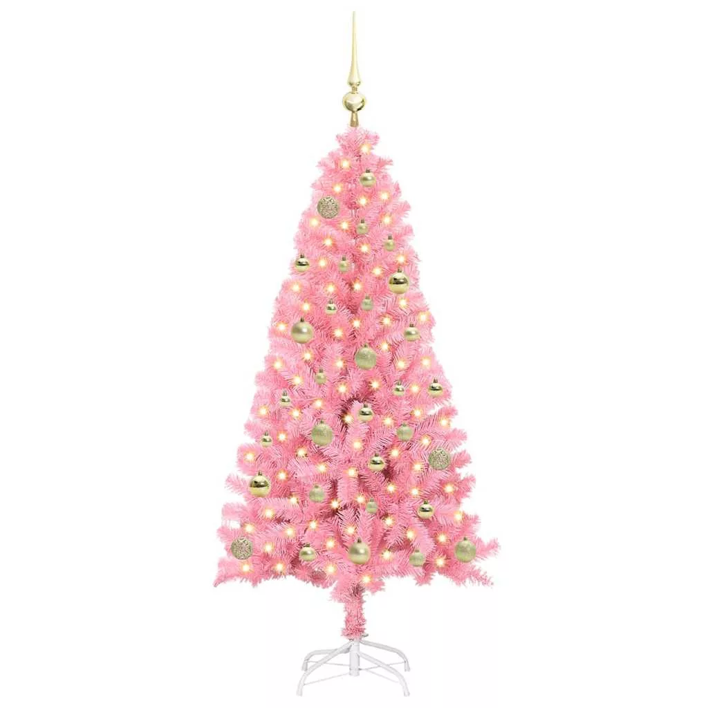 vidaXL Karácsonyfa 150 LED-del állvánnyal Rózsaszín 150 cm PVC