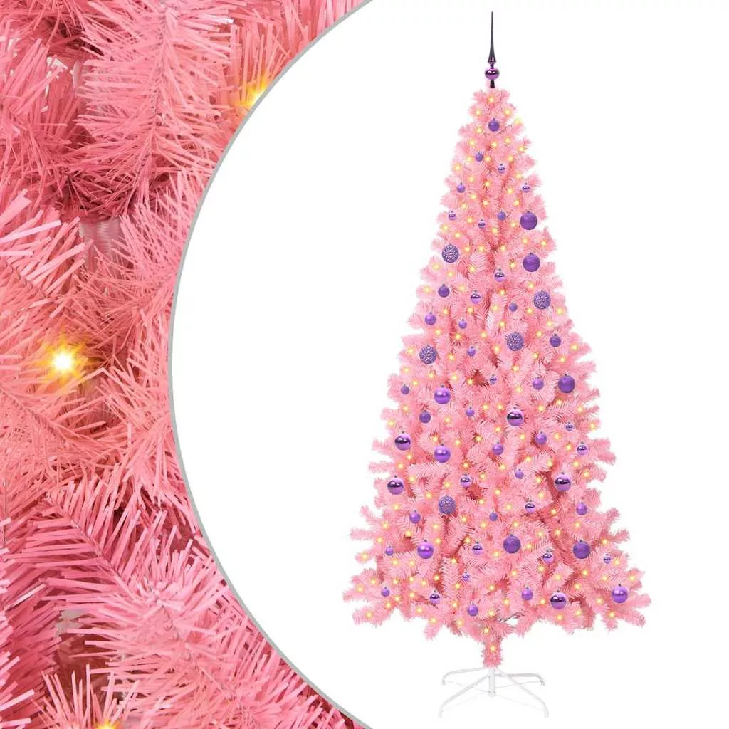 vidaXL Karácsonyfa 300 LED-del állvánnyal Rózsaszín 180 cm PVC