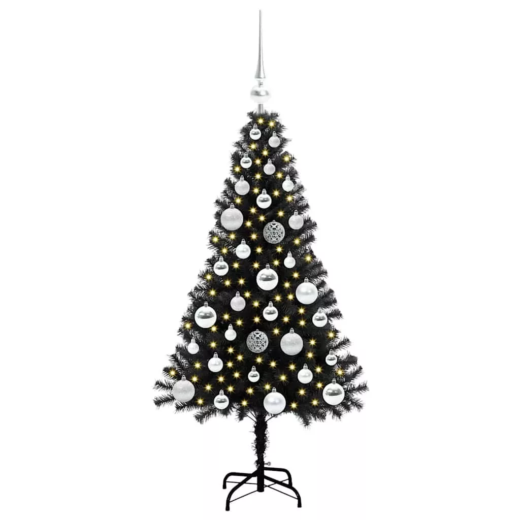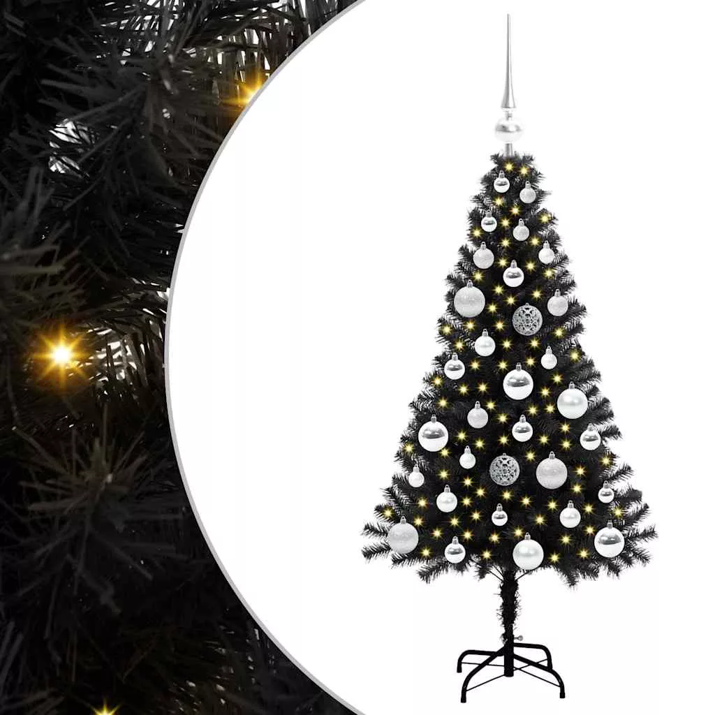 vidaXL Karácsonyfa 150 LED-del állvánnyal Fekete 120 cm PVC