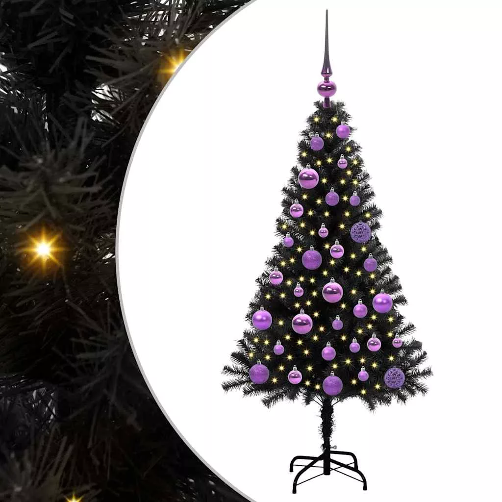 vidaXL Karácsonyfa 150 LED-del állvánnyal Fekete 120 cm PVC
