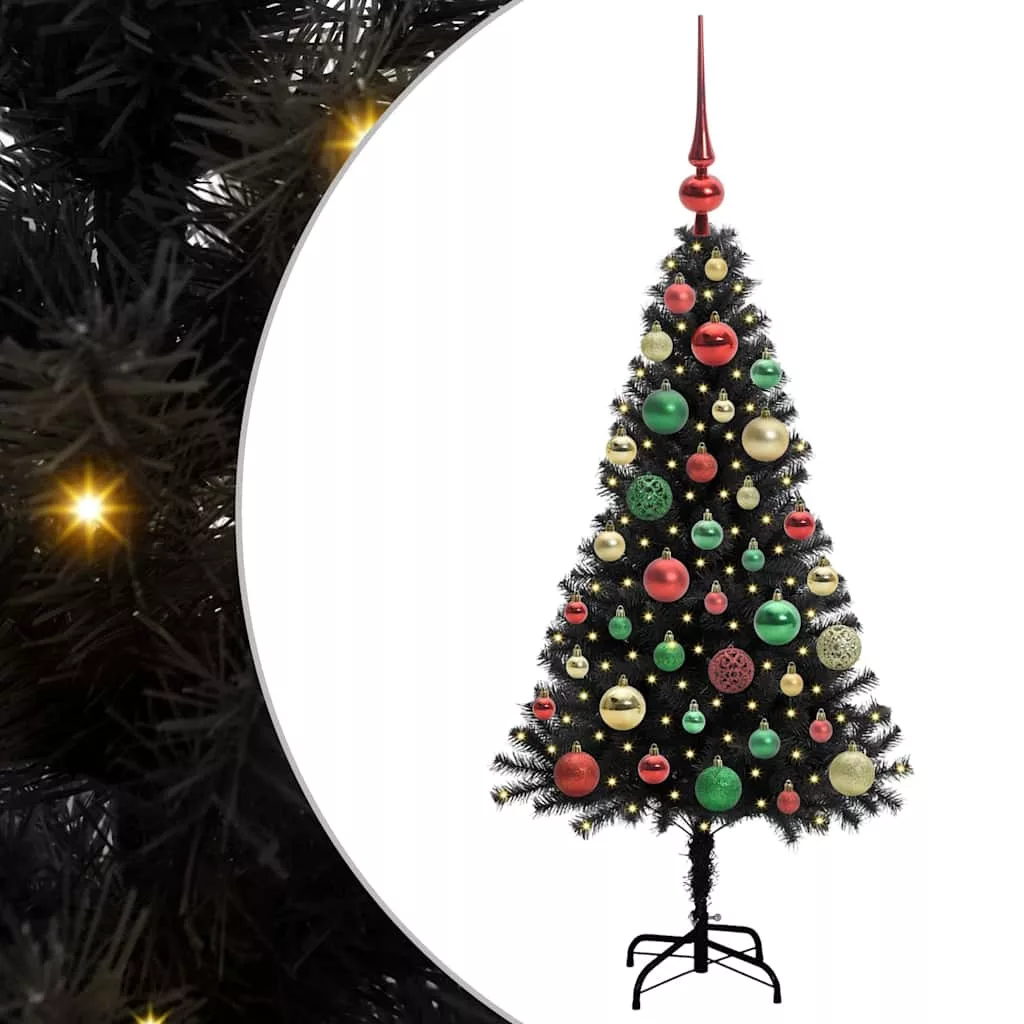 vidaXL Karácsonyfa 150 LED-del állvánnyal Fekete 120 cm PVC